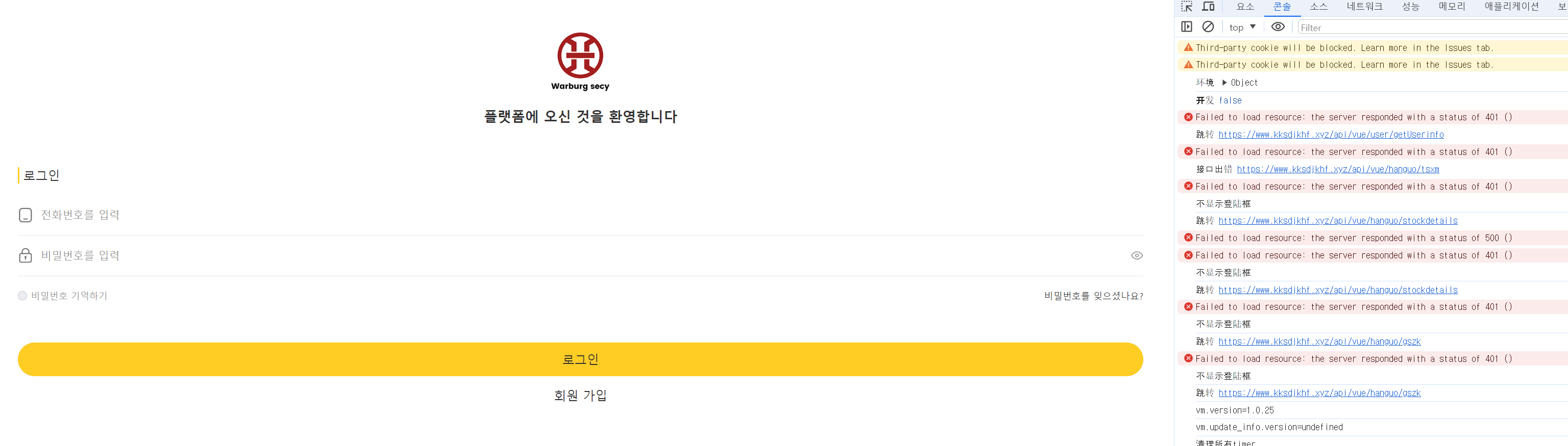 본 사안은 인터넷 광고 및 텔레그램, 문자메세지를 통하여 재테크 관련 정보를 알려주는 척 피해자에게 접근한 뒤 주식 리딩을 해주고 주식 정보를 계속해서 알려주는 것 처럼 접근하여 신뢰를 쌓다가 종국에는 수익 성장 프로젝트를 통하여 수익을 낼 수 있다면서 warburg secy라는 거래소 어플리케이션 다운로드 및 가입을 유도하여 피해자들이 자신들이 지정한 계좌로 현금을 입금하면 이를 거래소 계좌에 예치하고 그 자금으로 투자를 할 것을 유도하였습니다. 해당 어플리케이션은 모두 가짜로써 해당 화면에 표시된 부분들은 모두 사기 일당의 조작으로 화면에서만 표시된 것이고 실제 출금을 하려면 여러가지 이유를 대면서 불가능하다며 투자금을 편취하였습니다[실제 회사 및 인물과는 전혀 무관한 사칭형 사기조직으로 판단되니 주의를 요합니다]. 현재는 애플 앱스토어 및 구글 플레이스토어에서 내려간 상황이며, 계속해서 어플리케이션을 스토어에 올리거나 APK 파일을 전송하며 설치를 권유하니 조심하시기 바랍니다. 또한 아래 사진과 같이 크롬 작업자 도구를 이용하면 해당 사이트가 중국어로 이루어진 것을 확인할 수 있습니다.