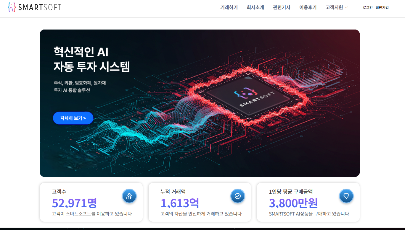 오늘은 실제는 존재하지도 않는 SMARTSOFT(스마트소프트)라는 회사를 '표방'하여 피해자들에게 접근한 뒤 AI 자동매매 프로그램을 통한 투자를 유도하며 계속하여 많은 투자금을 지급하에 한 후 나중에는 투자금 뿐 아니라 수수료 또는 세금 명목의 금원까지 편취한 사례를 소개해드리겠습니다.