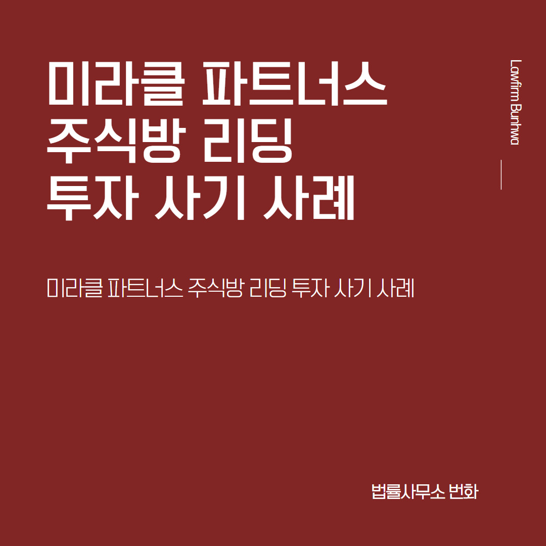 오늘은 '미라클 파트너스(MIRACLE Partners)' 이름의 주식방을 '표방'하여 피해자들에게 접근한 뒤 특별종목, 추천종목에 주식투자를 유도하며 위탁매매를 통해 계속하여 많은 투자금을 지급하게 한 후 나중에는 투자금 뿐 아니라 수수료 또는 세금 명목의 금원까지 편취한 사례를 소개해드리겠습니다.
