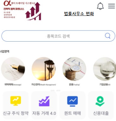 본 사안은 케이프투자증권이라는 금융회사를 사칭하고, 허위의 MTS(Mobile Trading System) α 알파 데이트레이딩 4.0를 표방하면서 국내주식, 대량 거래, 차액거래, IPO, 해외선물 투자상품에 투자를 하면 큰 수익을 얻을 수 있다고 홍보하면서 피해자들에게 투자를 유도하고 있는 사안입니다. [*****실제 인물 및 회사와는 전혀 무관한 사칭형 사기조직이기 때문에 절대 주의를 요합니다.].