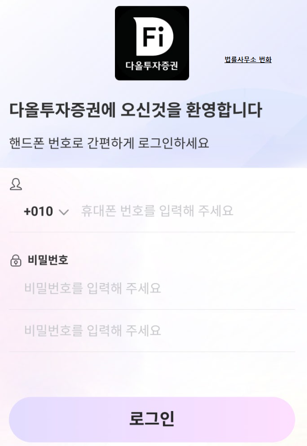 본 사안은 다올투자증권라는 금융회사를 사칭하고, 허위의 MTS(Mobile Trading System)를 표방하면서 국내주식, 대량 거래, 차액거래, IPO, 해외선물 투자상품에 투자를 하면 큰 수익을 얻을 수 있다고 홍보하면서 피해자들에게 투자를 유도하고 있는 사안입니다. [*****실제 인물 및 회사와는 전혀 무관한 사칭형 사기조직이기 때문에 절대 주의를 요합니다.].