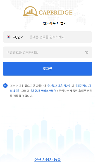 본 사안은 캡브리지(CapBridge International)이라는 금융회사를 사칭하고, 허위의 MTS(Mobile Trading System)를 표방하면서 국내주식, 대량 거래, 차액거래, IPO, 해외선물 투자상품에 투자를 하면 큰 수익을 얻을 수 있다고 홍보하면서 피해자들에게 투자를 유도하고 있는 사안입니다. [*****실제 인물 및 회사와는 전혀 무관한 사칭형 사기조직이기 때문에 절대 주의를 요합니다.].