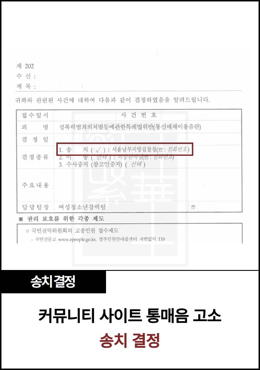 피해자 입장인 분들께는 "송치" 라는 결정이 나올 수 있도록.