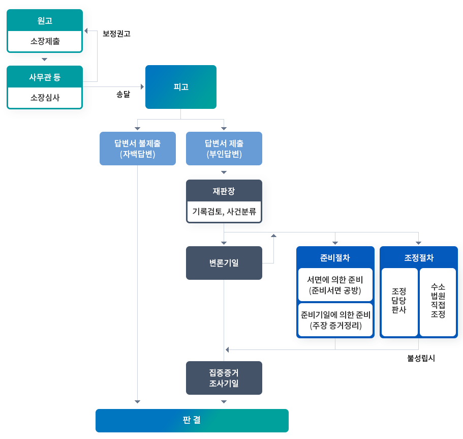 부터 시작합니다. 아래는 일반적 민사소송의 흐름도이며,