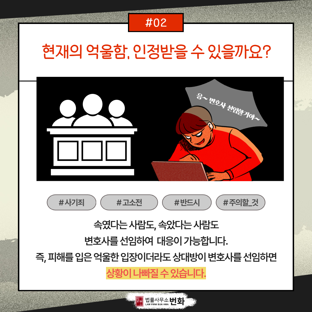현재 사기로 인하여 피해회복이 절실하다면 주저하지 마시고 상담이라도 받아보시길 권유 드립니다.