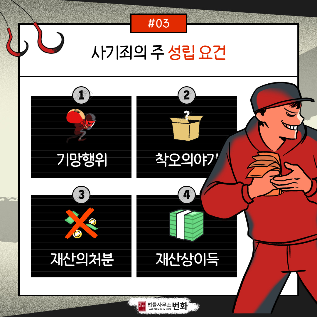 사기죄를 구성하는 행위태양(성립요건)은 크게 4가지로 분류할 수 있습니다.