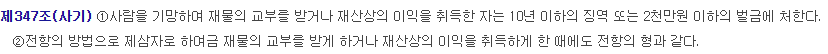 받았다고 한다면 위와같이 형법에서 규정하고 있는 제347조 사기죄를 구성하여