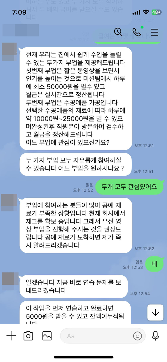 처음접근은 대부분 SNS등에 각종 광고·메신저 등을 통하여 부업을 통해 수십~수백을