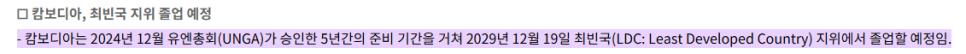 2029년 최빈국 지정 해제를 앞두고 있습니다.