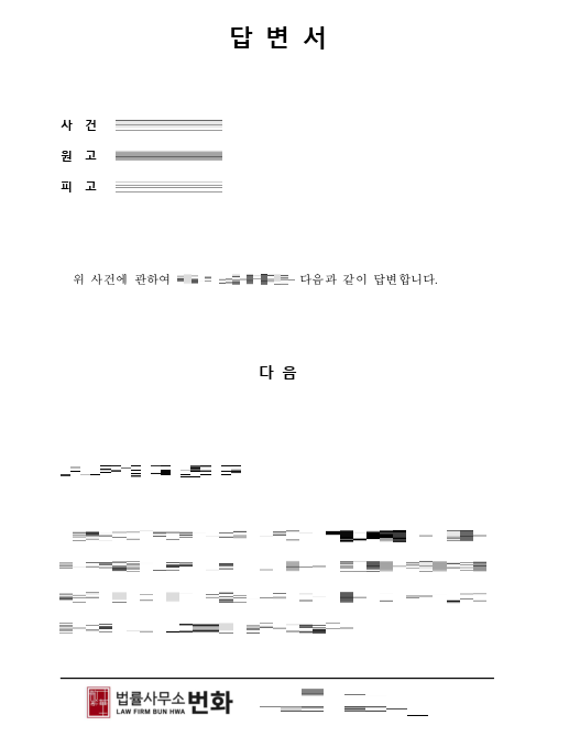 피고는 원고의 소장을 받고 그 소장에 대한 입장을 답변서로부터 처음 피력하게 됩니다.