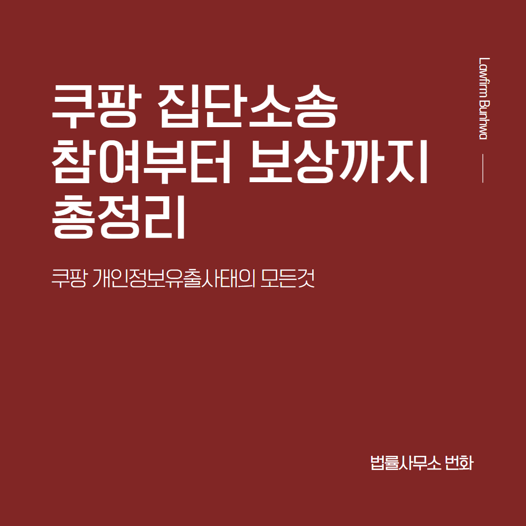 안녕하세요 법률사무소 번화 입니다. 우선, 어제자로 쿠팡개인정보유출 사태와 관련하여 집단소송 참여자를...