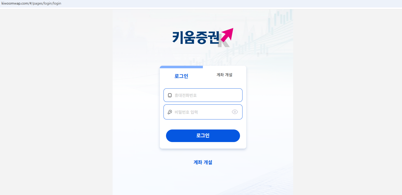 본 사안은 키움증권을 사칭하고 www.kiwoomwap.com 라는 허위의 웹사이트를 만들며 기업단체투자방식으로 투자를 권유하고 투자를 하면 큰 수익을 얻을 수 있다고 홍보하면서 피해자들에게 투자를 유도하고 있는 사안입니다. [*****실제 인물 및 회사와는 전혀 무관한 사칭형 사기조직이기 때문에 절대 주의를 요합니다.].