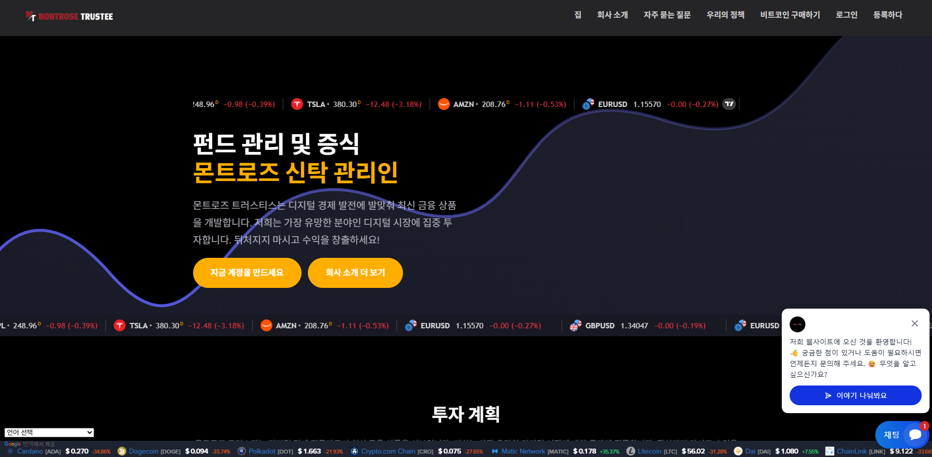 오늘은 미국과 캐나다의 환경 서비스 회사를 사칭하는 몬트로즈 트러스티스(https://montrosetrusteeltd.com/) 라는 이름으로 허위의 MTS(Mobile Trading System)를 이용한 투자를 권유하면서 네이버 밴드방, 텔레그램 등을 통해 프로젝트를 진행한다면서 지수 투자, 레버리지 거래, IPO 상장, 해외선물, 코인투자 등으로 고수익을 얻을 수 있다며 피해자들에게 접근한 뒤 피해자들을 속여 투자자들로부터 투자를 유도하는 내용의 투자사기 사례를 설명드리려고 합니다.