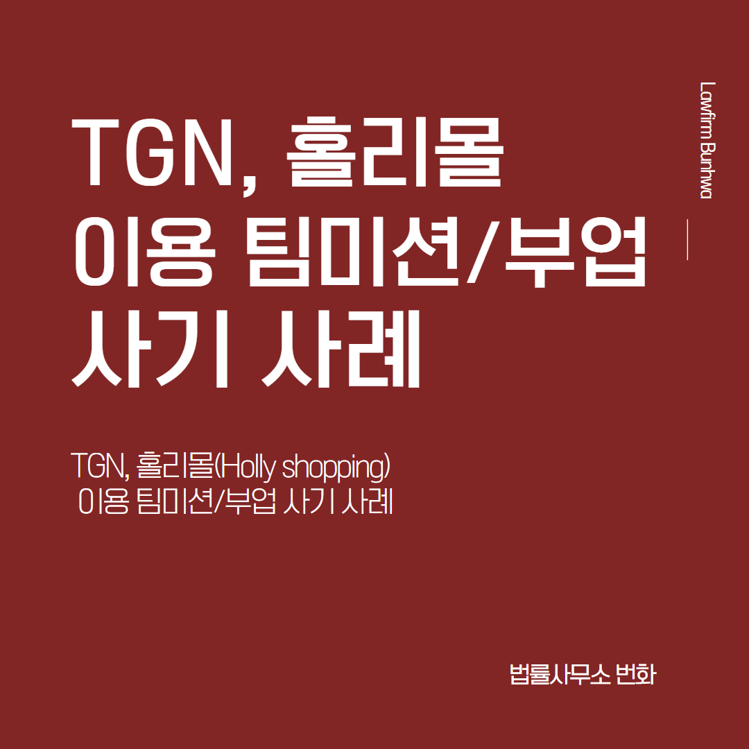 오늘은 TGN, 홀리쇼핑 이라는 여러 가지 이름으로 구매대행을 하는 부업을 통해 간단한 업무를 수행하면 하루에 10~20만원의 수익을 얻을 수 있다면서 접근하여, 거액의 결제대금을 편취하는 방식의 온라인 부업/팀미션 사기사례를 설명드리려고 합니다.