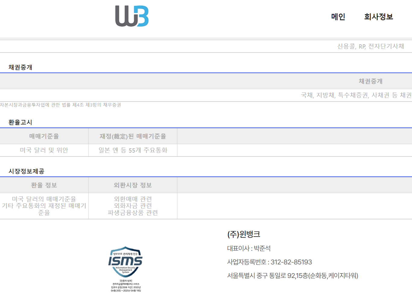 특히나 주식회사 윈뱅크라는 상호는 등기소에서 확인조차 불가하며 ISMS 인증 역시도 확인하지 못하였습니다.