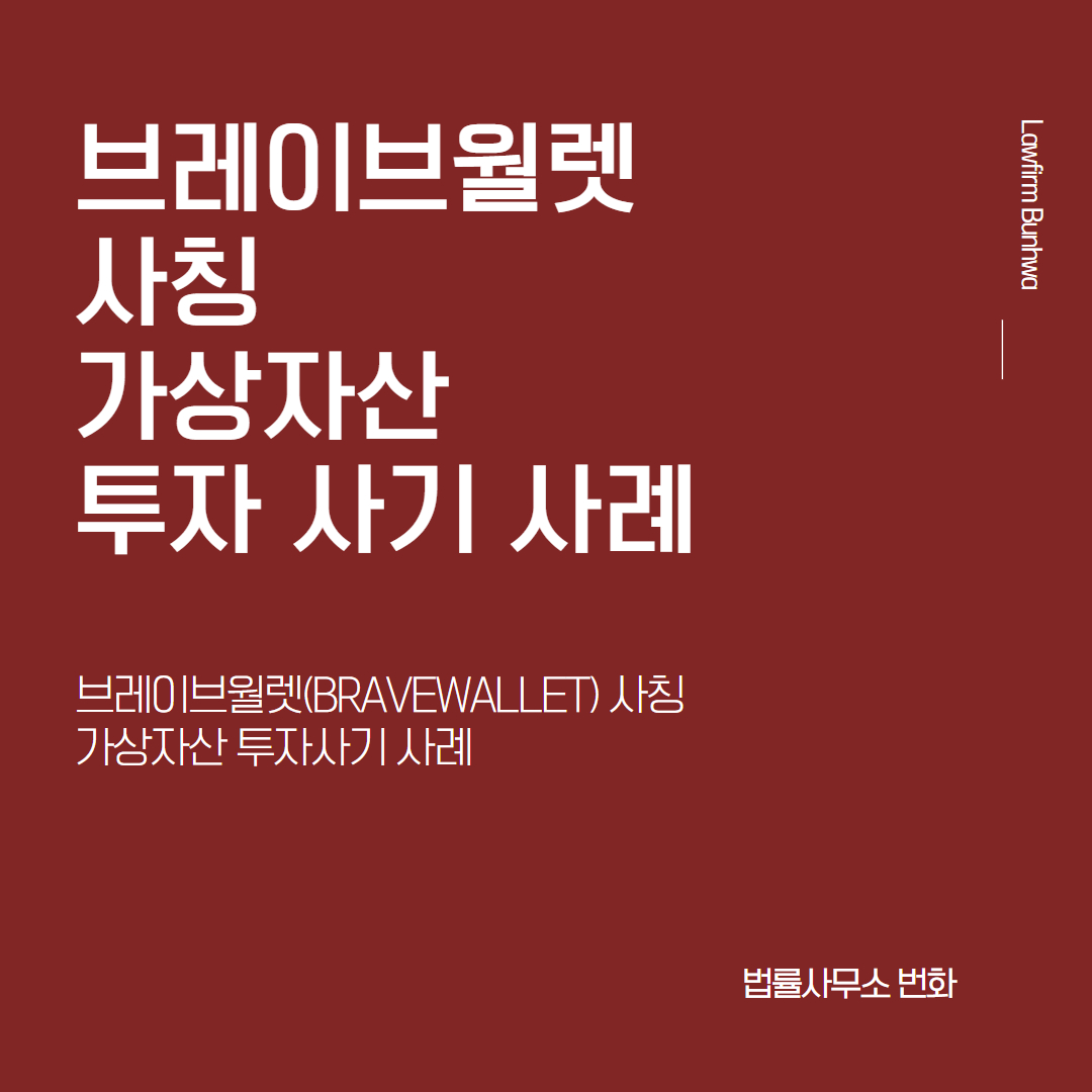 오늘은 브레이브월렛(BraveWallet)이라는 가상화폐 지갑 등을 영위하는 가상자산 회사를 사칭하며 피해자들에게 접근한 뒤 투자를 유도하며 계속하여 많은 투자금을 지급하에 한 후 나중에는 투자금 뿐 아니라 수수료 또는 세금 명목의 금원까지 편취한 사례를 소개해드리겠습니다.