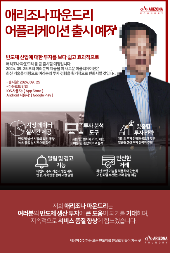 오늘은 실제는 존재하지도 않는 반도체 제조업체인 아리조나 파운드리라는 회사를 '표방'하여 피해자들에게 접근한 뒤 투자를 유도하며 계속하여 많은 투자금을 지급하에 한 후 나중에는 투자금 뿐 아니라 수수료 또는 세금 명목의 금원까지 편취한 사례를 소개해드리겠습니다.