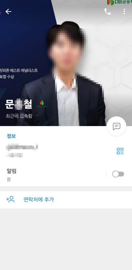 본 사안은 본인들이 DB금융투자의 관계자이며 기관계좌를 이용한다고 소개하며, 기관계좌, 공모주 저가 매입 등의 투자를 통해 엄청난 수익을 얻을 수 있다고 홍보하면서 피해자들에게 주식 투자를 유도하고 있는 사안입니다. [*****실제 인물 및 회사와는 전혀 무관한 "사칭형 사기조직"이기 때문에 절대 주의를 요합니다.].