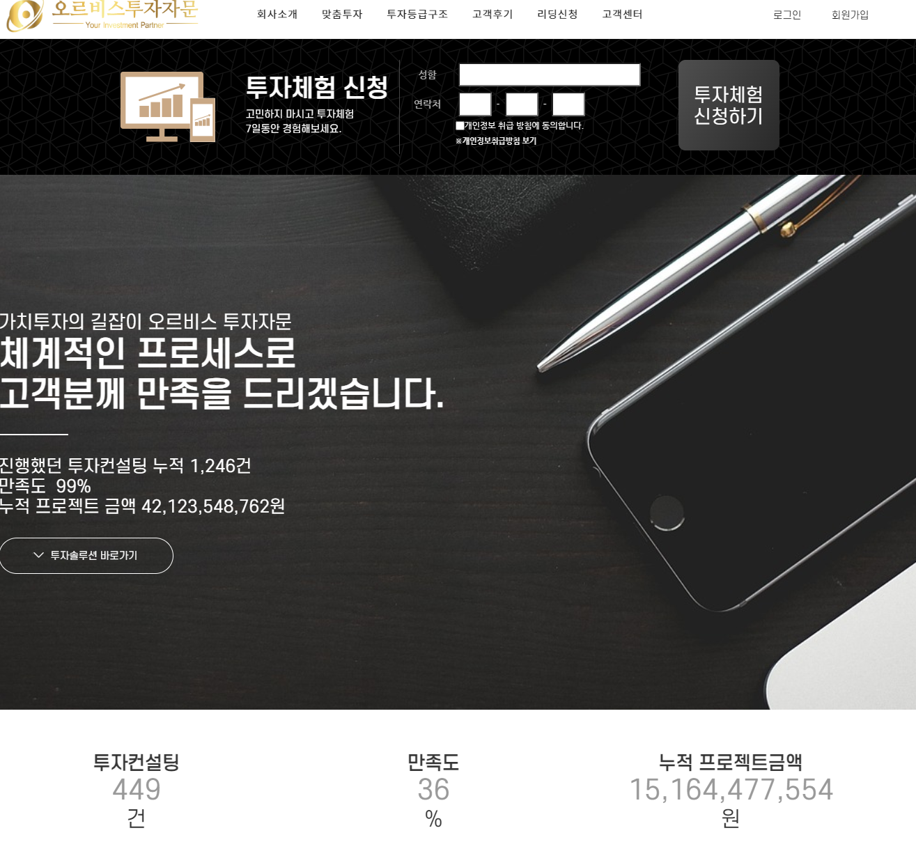 본 사안은 오르비스 투자자문(Orbis-Invest)라는 허위의 투자회사를 표방 외환거래, 지수·주식 및 통화 장외거래, 금 차익(XAU/USD), 오일, 나스닥 지수거래 등 해외선물 상품 투자 등을 통해 리딩 프로젝트를 시작한다고 주장하며 처음에는 무료로 투자금을 소액 지급할테니 시험삼아 해보고 이후에는 큰 수익률을 얻을 수 있다고 홍보하면서 피해자들에게 투자를 유도하고 있는 사안입니다[*****실제 인물 및 회사와는 전혀 무관한 사칭형 사기조직이기 때문에 절대 주의를 요합니다.].