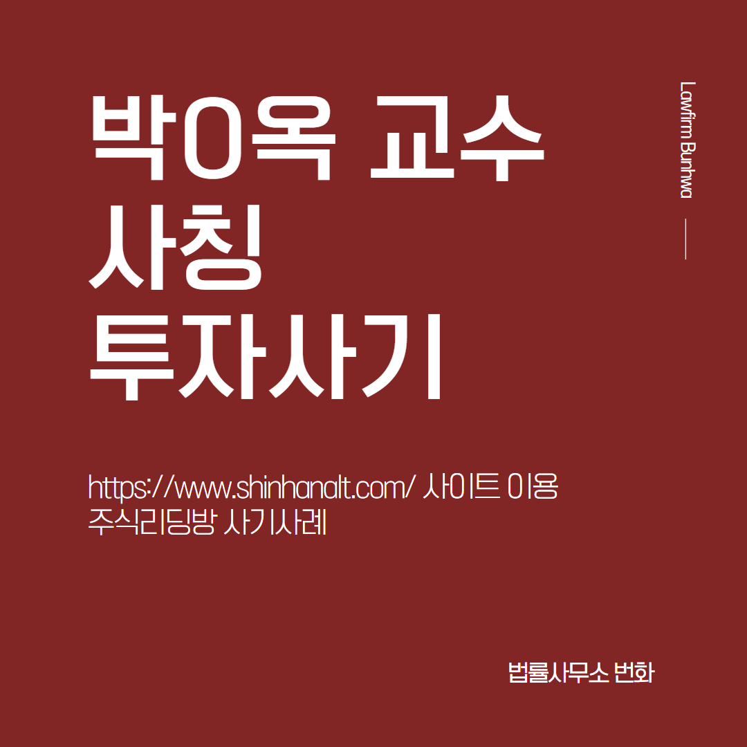 오늘은 신한투자증권과 이른바 '주식농부'로 유명한 개인투자자 박O옥 교수를 사칭하여 네이버 밴드방을 운영하고, 투자하면 수익을 보장한다면서 https://www.shinhanalt.com, https://www.shinhanhbhf.com/ 등의 사이트를 사용한 주식리딩방 투자사기 사례를 설명드리려고 합니다.