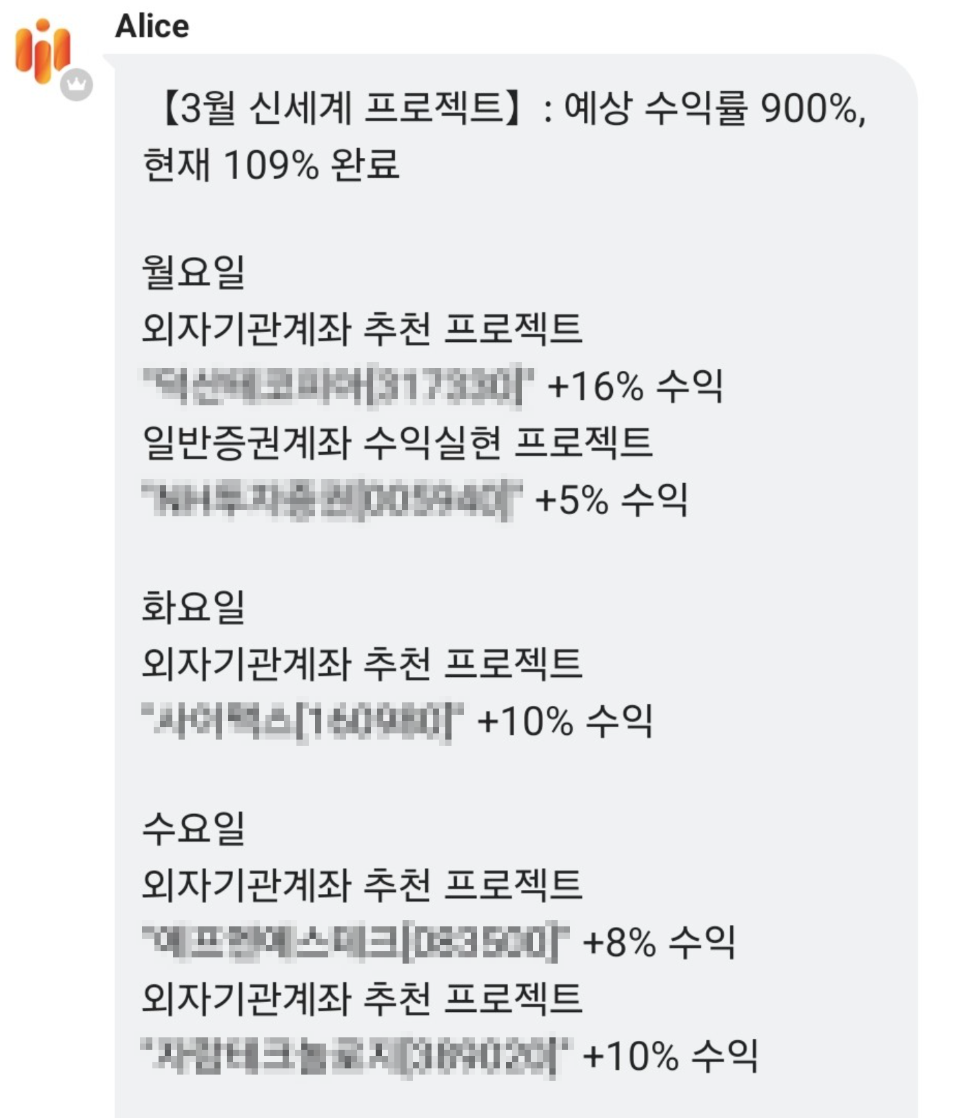 이들이 운영하는 밴드에서는 특징적으로 '번개프로젝트(2월)', '신세계프로젝트(3월)' 등 프로젝트에 참여하면 수익률을 300%~900%로 끌어올릴 수 있으니 적극적인 프로젝트 참여를 유도하고, 이에 참여하지 않으면 밴드에서 강퇴시키는 등의 방식으로 밴드를 운용하였으니, 위 이름들을 사용한 계정들이 있는 밴드에 참여하고 계시는 분들은 특히 투자금을 납입하지 않도록 주의하시기 바랍니다. 이들은 피해자들이 투자금의 출금을 요구하면 수수료를 먼저 납부해야 출금이 가능하다는 취지로 안내하면서, 중도해지도 불가능하고 원금 회수도 불가능하다면서 투자금의 회수를 거부하는 방식으로 피해자들의 금원을 편취하고 있습니다.
