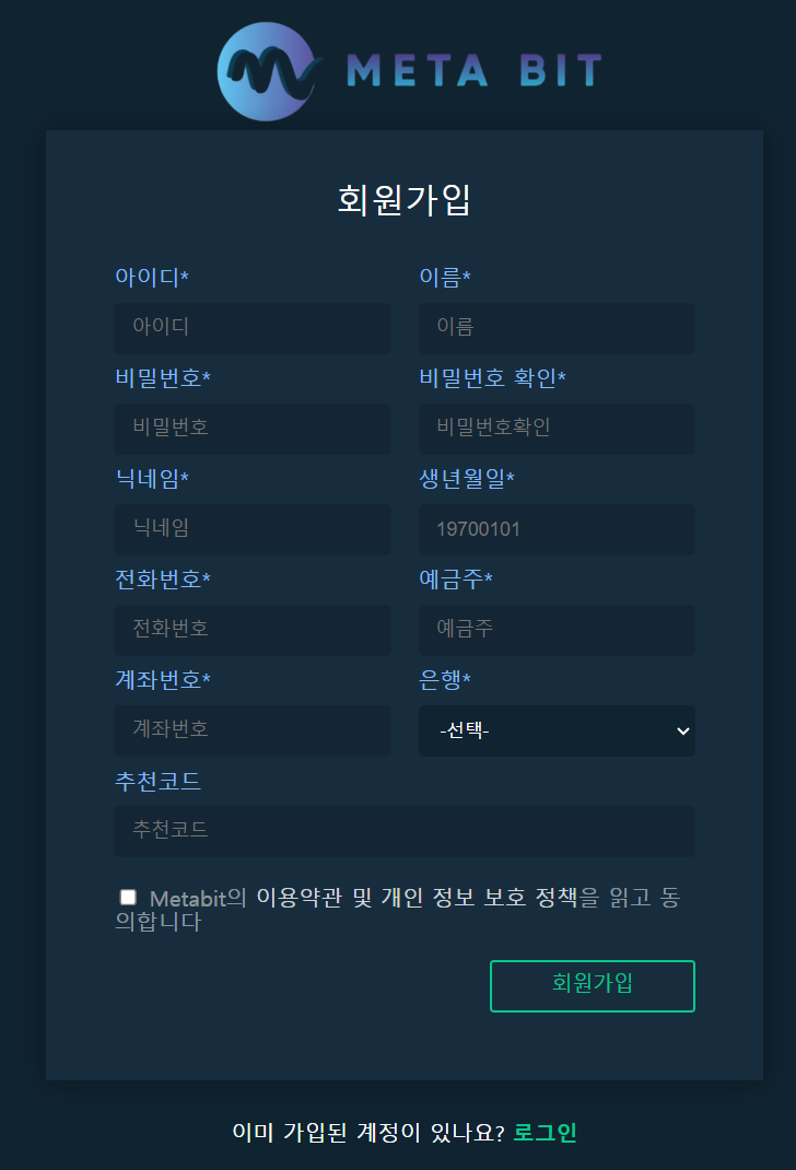 오늘은 'Metabit(메타빗, 메타비트)' 라는 이름을 하고 있는 코인 거래소 플랫폼을 표방/사칭하고 텔레그램, 네이버 밴드방, 카카오톡 단체채팅방 등을 이용하여 프로젝트를 진행한다며 수익률을 미끼로 피해자들에게 접근한 뒤 피해자들을 속여 투자자들로부터 투자를 유도하는 내용의 투자사기 사례를 설명드리려고 합니다.