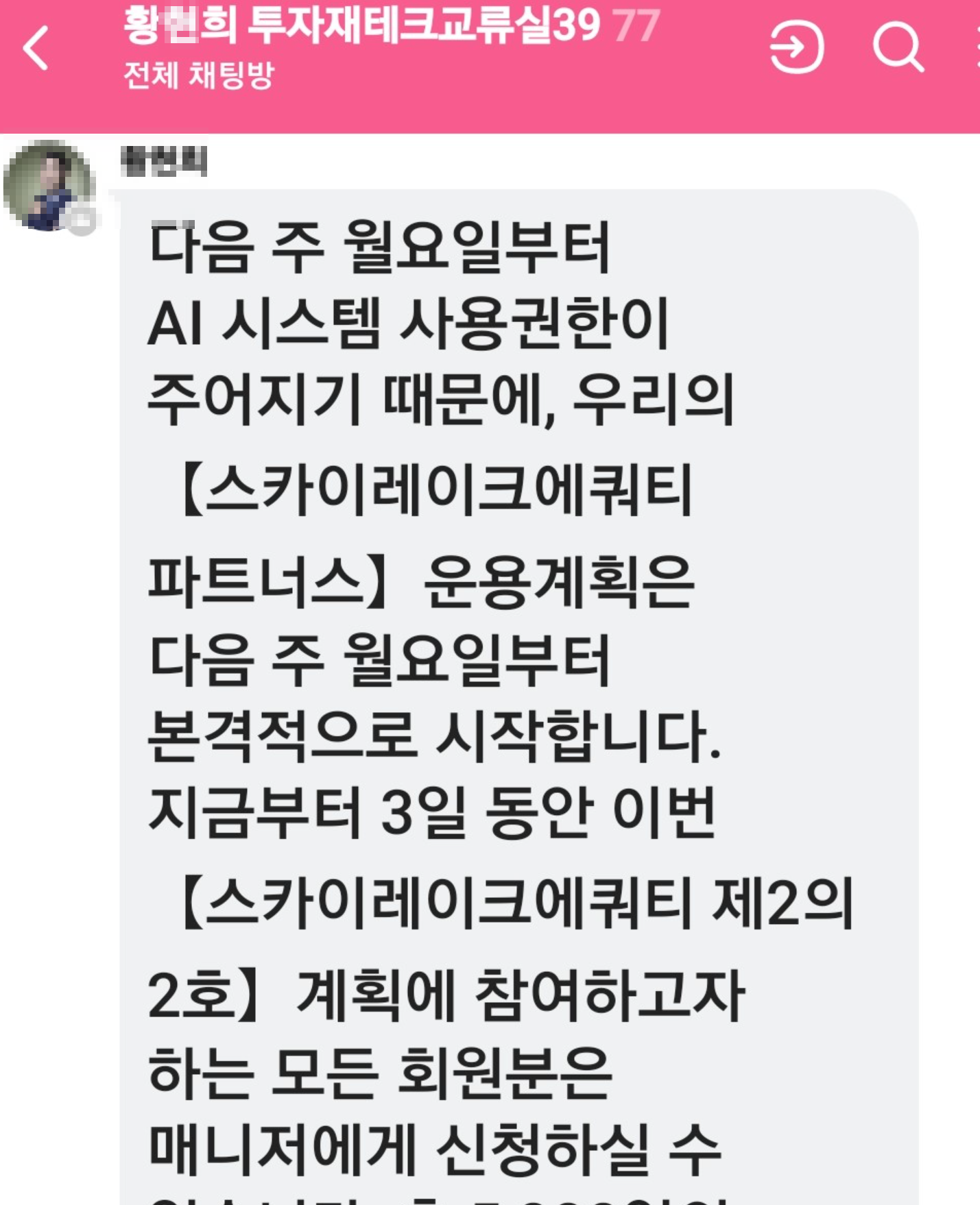 오늘은 주식투자를 통해 부를 쌓은 것으로 유명한 개그맨 황O희 또는 유명 강사 김O경씨가 운영한다면서 '황O희 투자재테크교류실', '제2의2호 프로그램 교류방' 등의 이름으로 주식리딩방을 만들어 '스카이레이크에쿼티 제2의 2호 계획'이라는 투자협약에 참여하라고 유도하면서 'AI시스템'을 통해 '매일 15~20%의 수익률'을 얻을 수 있다는 내용을 홍보하면서 투자를 유도하는 내용의 주식거래 리딩방 투자사기 사례를 설명드리려고 합니다.