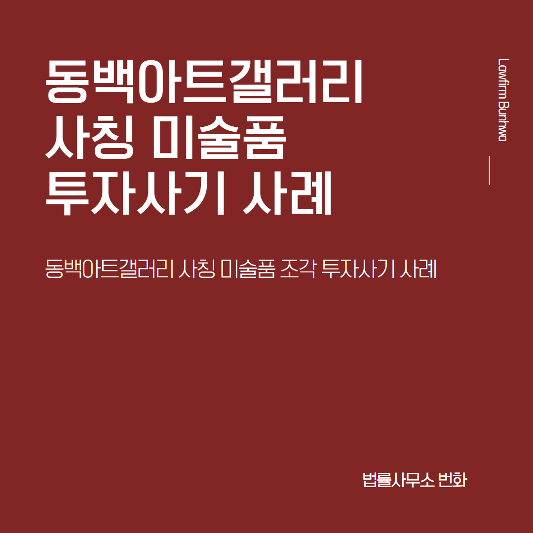 오늘은 한국의 미술갤러리인 동백아트갤러리를 '사칭'하여 피해자들에게 접근한 뒤 미술품 조각투자를 유도하며 계속하여 많은 투자금을 지급하에 한 후 나중에는 투자금 뿐 아니라 수수료 또는 세금 명목의 금원까지 편취한 사례를 소개해드리겠습니다.
