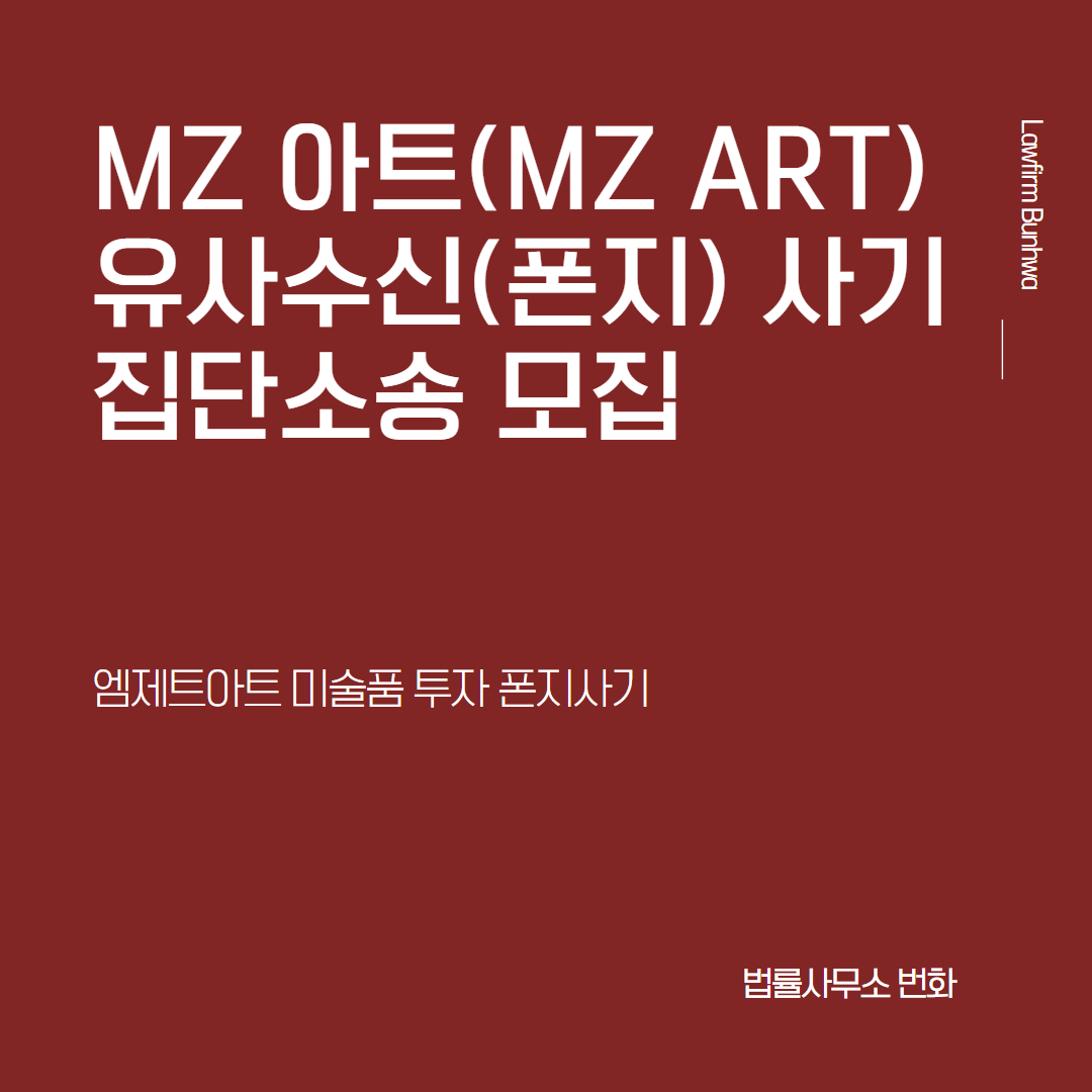 엠제트아트(MZ아트갤러리, MZ아트, MZ ART)의 대표와 임원진이 기존 휴대전화번호나 연락처를 바꾸고, 관련 투자자료까지 파기한 다음 해외로 도피하였다는 정황이 확인되고 있습니다. 위 회사에 투자하시거나 피해를 보신 분은 본 법률사무소가 집단소송을 준비하고 있사오니 아래 링크를 통하여 빠르게 저희 로펌에 연락주시기 바랍니다.