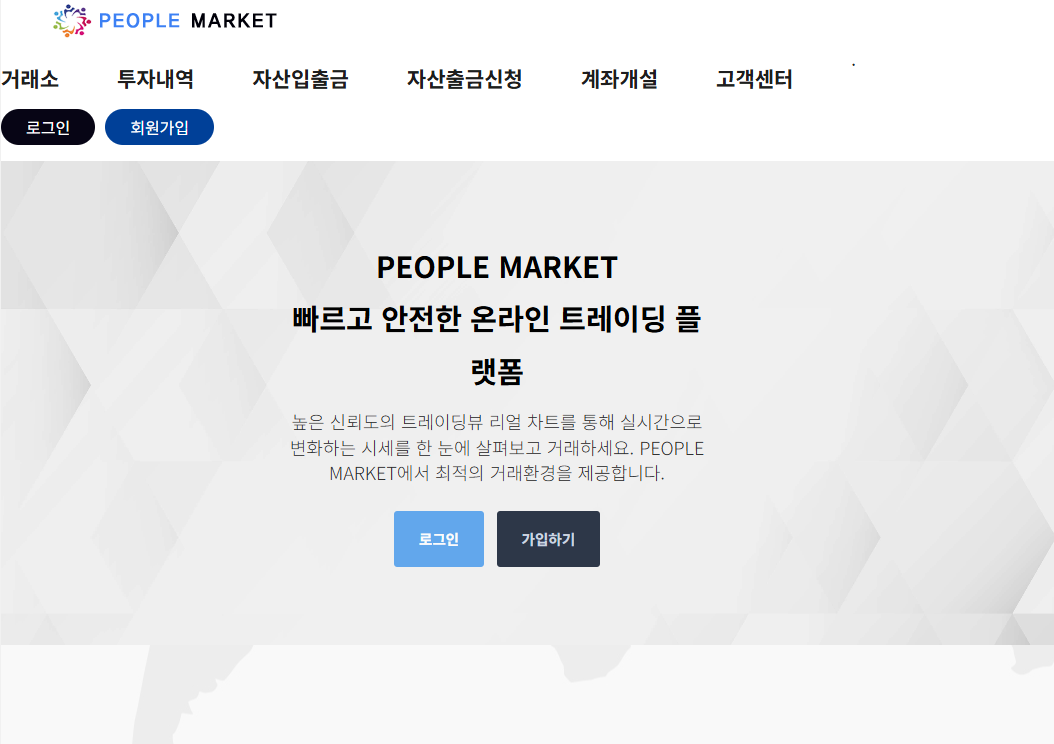 본 사안은 PEOPLE MARKET STOCK(피플마켓스탁)이 운영하는 해외 선물 및 금지수 관련 투자상품에 투자를 하면 에 참여하면 큰 수익을 얻을 수 있다고 홍보하면서 피해자들에게 투자를 유도하고 있는 사안입니다. [*****실제 인물 및 회사와는 전혀 무관한 사칭형 사기조직이기 때문에 절대 주의를 요합니다.].