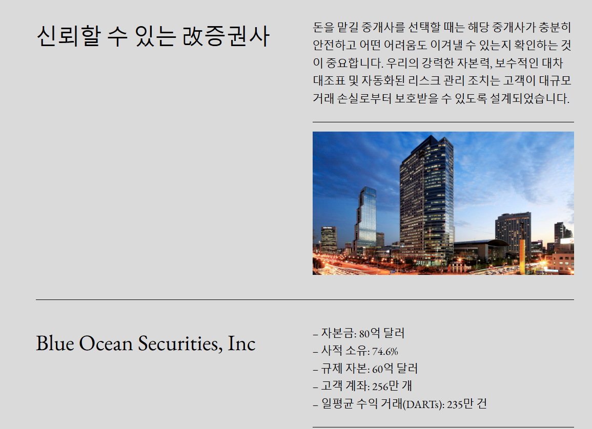 본 사안은 '블루오션증권(Blue Ocean Securities)'이라는 허위의 미국 미니애폴리스 소재 증권거래소가 운영하는 주식 및 해외 선물 투자상품에 투자를 하면 에 참여하면 큰 수익을 얻을 수 있다고 홍보하면서 피해자들에게 투자를 유도하고 있는 사안입니다. [*****실제 인물 및 회사와는 전혀 무관한 사칭형 사기조직이기 때문에 절대 주의를 요합니다.].