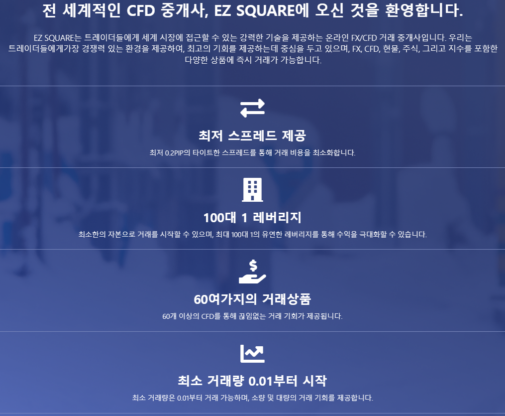 본 사안은 EZ SQUARE 가 운영하는 FX마진거래/CFD 관련 투자상품에 투자를 하면 에 참여하면 큰 수익을 얻을 수 있다고 홍보하면서 피해자들에게 투자를 유도하고 있는 사안입니다. [*****실제 인물 및 회사와는 전혀 무관한 사칭형 사기조직이기 때문에 절대 주의를 요합니다.].