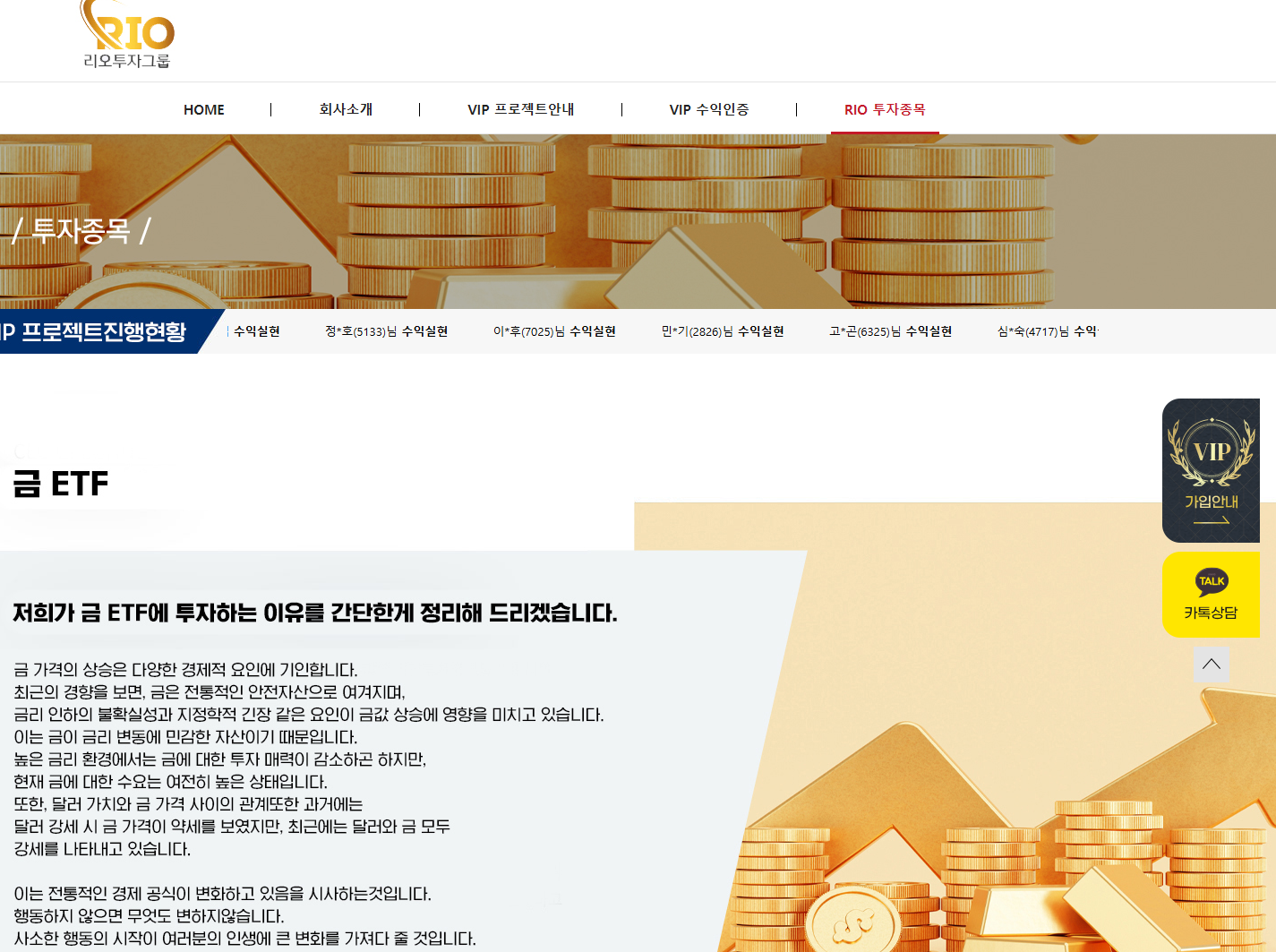 본 사안은 리오투자그룹이 추천/운영하는 현물 관련 투자상품에 투자를 하면 에 참여하면 큰 수익을 얻을 수 있다고 홍보하면서 피해자들에게 투자를 유도하고 있는 사안입니다. [*****실제 인물 및 회사와는 전혀 무관한 사칭형 사기조직이기 때문에 절대 주의를 요합니다.].