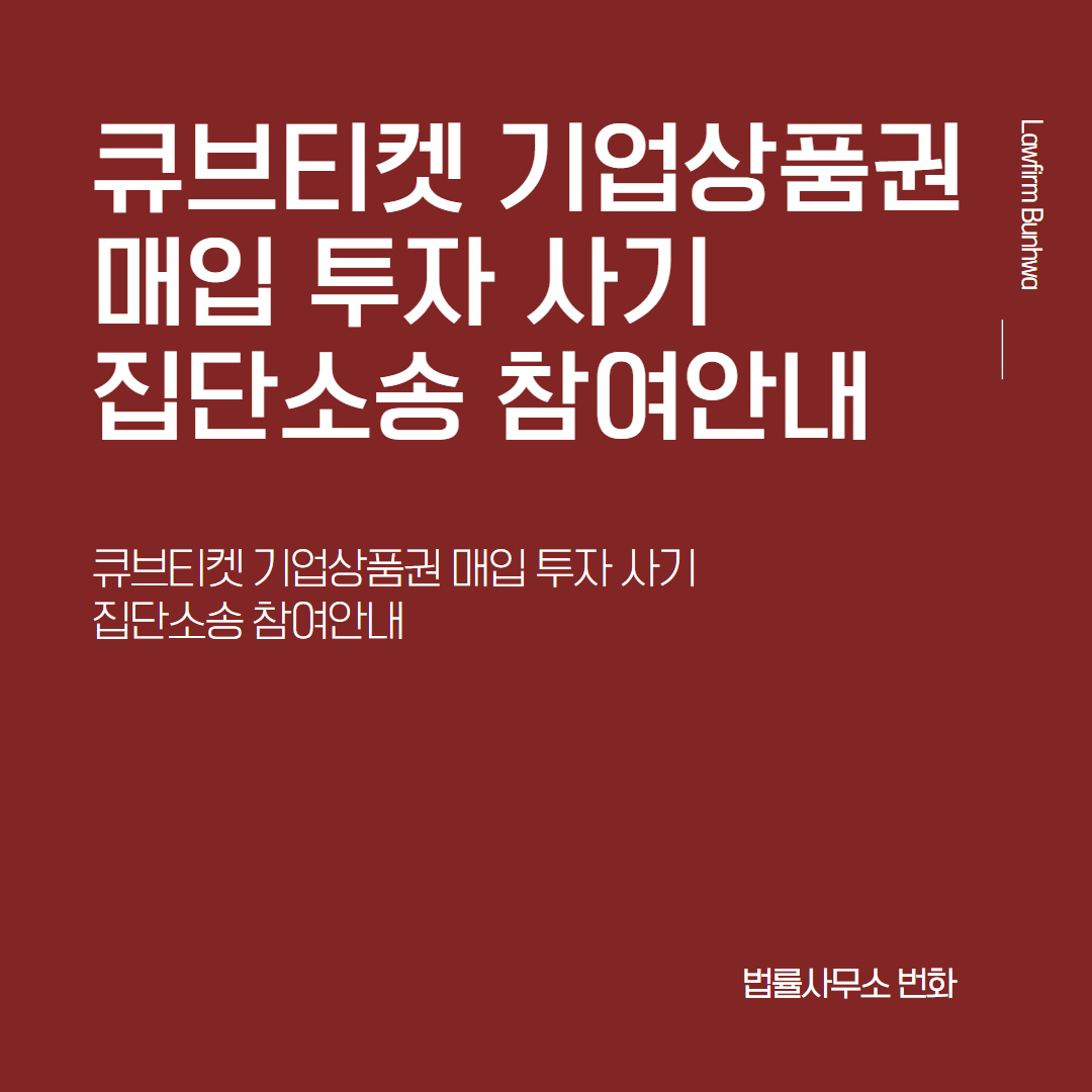 오늘은 기업 상품권을 매일 매입하고 판매하여 안정적인 현금배당이 가능하다면서 '큐브티켓(CUBE TICKET, 큐브인베스트먼트)' 라는 회사를 '표방'하여 피해자들에게 접근한 뒤, 상품권 예치금 투자를 유도하며 계속하여 많은 투자금을 지급하게 한 후 나중에는 투자금 뿐 아니라 수수료 또는 세금 명목의 금원까지 편취한 '큐브티켓 사기 사건'에 대한 피해자 집단소송 모집 이야기를 하려고 합니다.