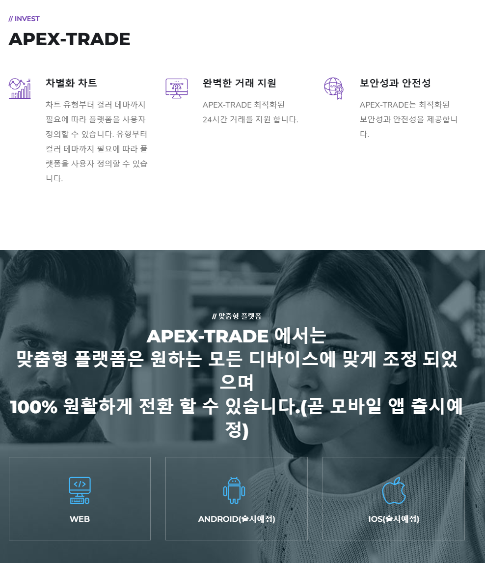 본 사안은 '아펙스 트레이드(APEX-TRADE)'이라는 허위의 가상화폐 거래소 표방하면서 코인 투자상품에 투자를 하면 큰 수익을 얻을 수 있다고 홍보하면서 피해자들에게 투자를 유도하고 있는 사안입니다. [*****실제 인물 및 회사와는 전혀 무관한 사칭형 사기조직이기 때문에 절대 주의를 요합니다.].