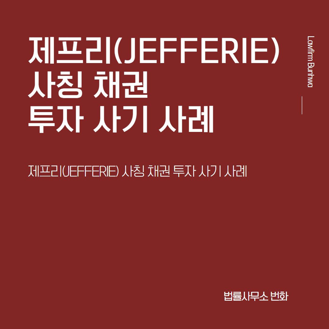 오늘은 미국의 대표적인 채권사인 제프리(JEFFERIE BOND)이라는 회사 '사칭'하여 피해자들에게 접근한 뒤 해외 채권 상품 투자를 유도하며 계속하여 많은 투자금을 지급하에 한 후 나중에는 투자금 뿐 아니라 수수료 또는 세금 명목의 금원까지 편취한 사례를 소개해드리겠습니다.