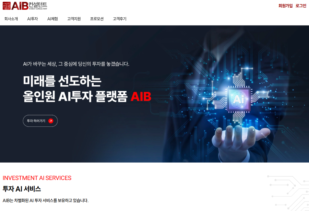 본 사안은 ' AIB 컨설턴트 '이라는 허위의 가상화폐 거래소 표방하면서 AI를 이용한 코인 투자상품에 투자를 하면 큰 수익을 얻을 수 있다고 홍보하면서 피해자들에게 투자를 유도하고 있는 사안입니다. [*****실제 인물 및 회사와는 전혀 무관한 사칭형 사기조직이기 때문에 절대 주의를 요합니다.].