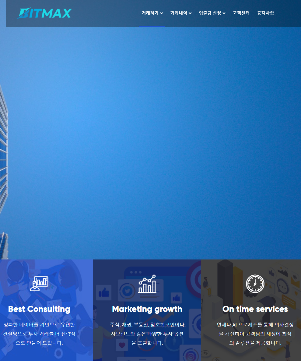 본 사안은 '비트맥스(BITMAX)'라는 미국의 가상자산 거래소를 사칭하여 허위의 가상화폐 거래소를 표방하면서 코인 투자상품에 투자를 하면 큰 수익을 얻을 수 있다고 홍보하면서 피해자들에게 투자를 유도하고 있는 사안입니다. [*****실제 인물 및 회사와는 전혀 무관한 사칭형 사기조직이기 때문에 절대 주의를 요합니다.].
