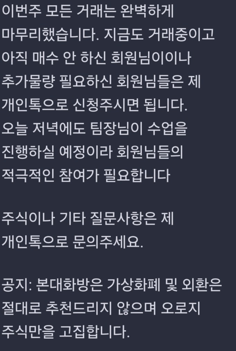 본 사안은 한양증권과 '슈퍼개미' 남석관씨를 사칭하여 주식리딩 밴드방을 운영하며 '이유리 매니저' 등의 이름으로 '내부주식프로젝트'라는 프로젝트를 시작한다고 주장하며 300%이상의 수익률을 얻을 수 있다고 홍보하면서 피해자들에게 투자를 유도하고 있는 사안입니다. [*****실제 한양증권과는 전혀 무관한 사칭형 사기조직이기 때문에 절대 주의를 요합니다.].