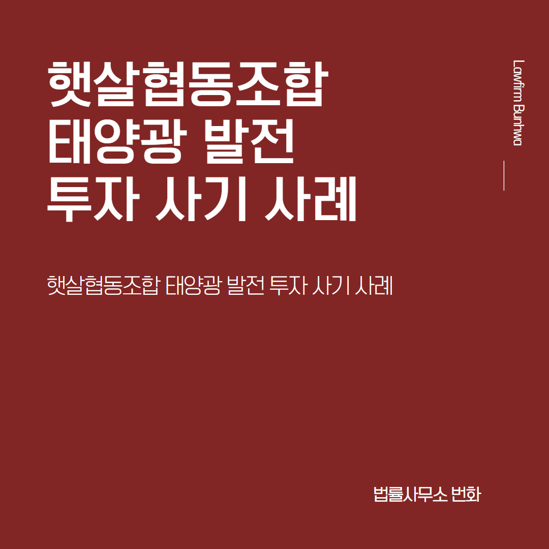 오늘은 실제는 존재하지도 않는 태양광에너지 발전투자 협동조합인 '햇살협동조합'이라는 조합을 '표방'하여 피해자들에게 접근한 뒤 태양광에너지 상품 투자를 유도하며 계속하여 많은 투자금을 지급하에 한 후 나중에는 투자금 뿐 아니라 수수료 또는 세금 명목의 금원까지 편취한 사례를 소개해드리겠습니다.