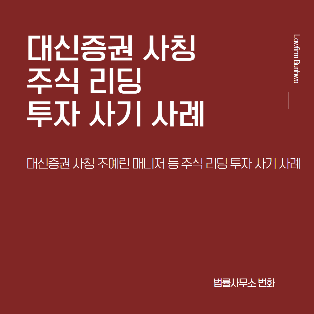 법률사무소 번화에서는 다양한 리딩 투자 사기를 처리하고 대응한 노하우가 축적되어 있으며, 다수의 예금채권가압류를 통해 피해자의 피해금을 일부나마 보전받을 수 있도록 도와드린 경험이 있습니다. 주식 리딩 투자사기의 특성상 매우 빠르게 대응하는 것을 원칙으로 하고 있고, 특히 형사 전문 변호사와 금융 전문 변호사의 협업을 통해 형사절차와 예금채권가압류의 동시진행이 신속하게 가능하니, 언제든지 편하게 문의주시기 바랍니다.
